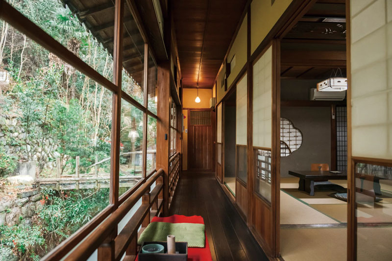 吉野の玄関口に佇む創業800有余年の老舗料亭「つるべすし弥助」。ベンガラの赤壁に出迎えられ門をくぐると、目の前に広がる風情ある木造三階建。吉川英治や谷崎潤一郎などの文人や、美空ひばりなど多くの著名人も訪れた老舗です。